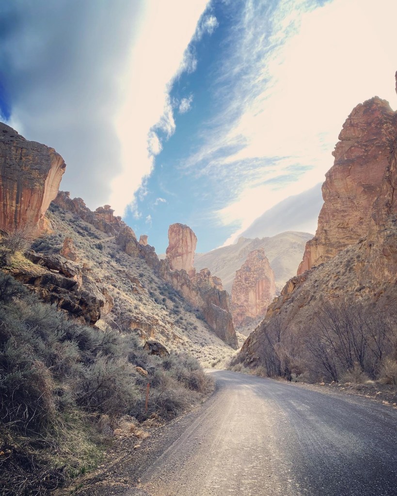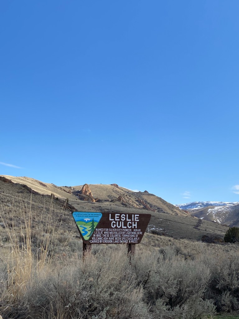 An east coast friend sent me a TikTok with a drone video of Leslie Gulch, which has been on my bucket list for awhile… after comparing busy summer schedules, we decided to take a chance and plan for a spring road-trip. Spring can be risky because while it’s usually pretty dry in Eastern Oregon, you do not want to be caught out there in any infrequent rain, or when the snow is thawing. We kept an eye on the weather and made a couple contingency plans which ended up working out great!