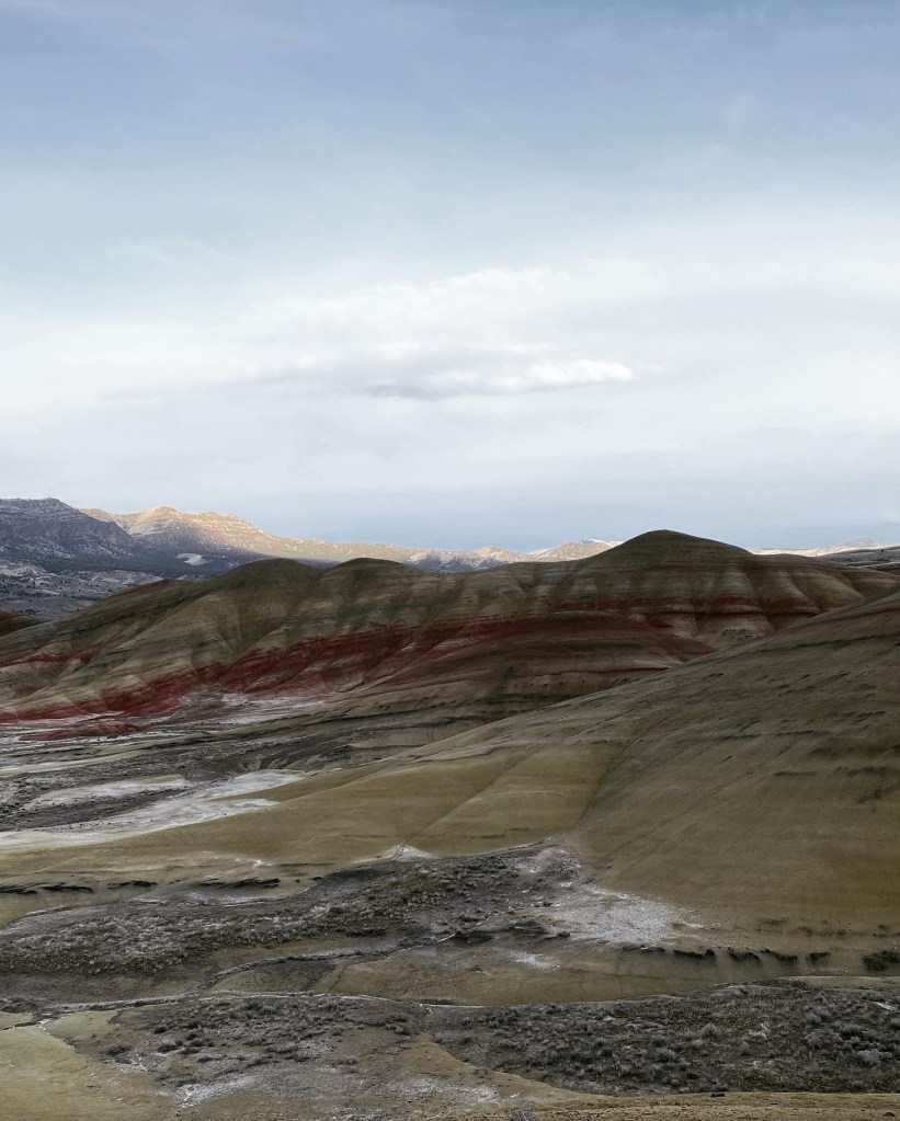 Day 4: We made our way back north along the Steens Mountains and headed toward the Painted Hills. Due to impending weather, we decided to rent an Air BnB in Mitchell, OR on a working ranch. It was a super cute “tiny house” with a great little fire to hang out by in the evening. The town of Mitchell boasts a population of 135, and when we stopped in Tiger Town Brewery for dinner it was bustling! We enjoyed a local brew and burgers, surrounded by the hum of happy locals. After dinner we made our way to the Painted Hills. It was slightly overcast, we we enjoyed the cows, colors, and geology. We went to the Painted Hills Overlooked, and took a short stroll through the Painted Cove Trail before retiring back at our “home” for the evening.