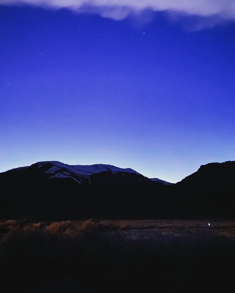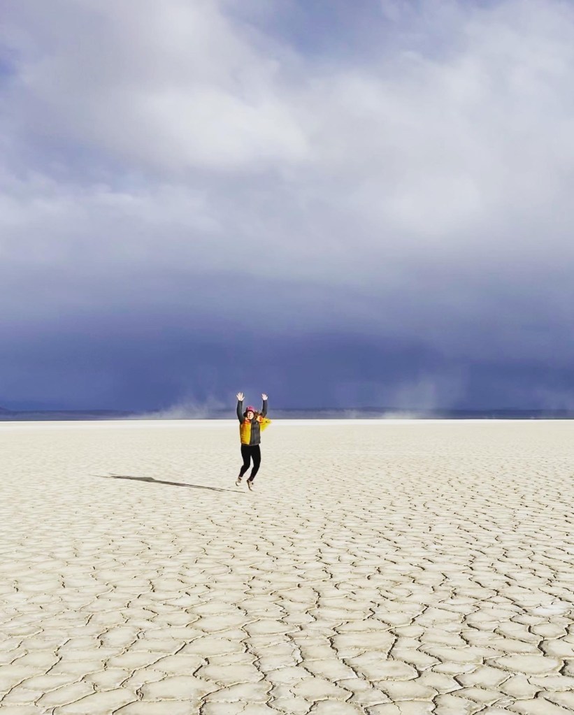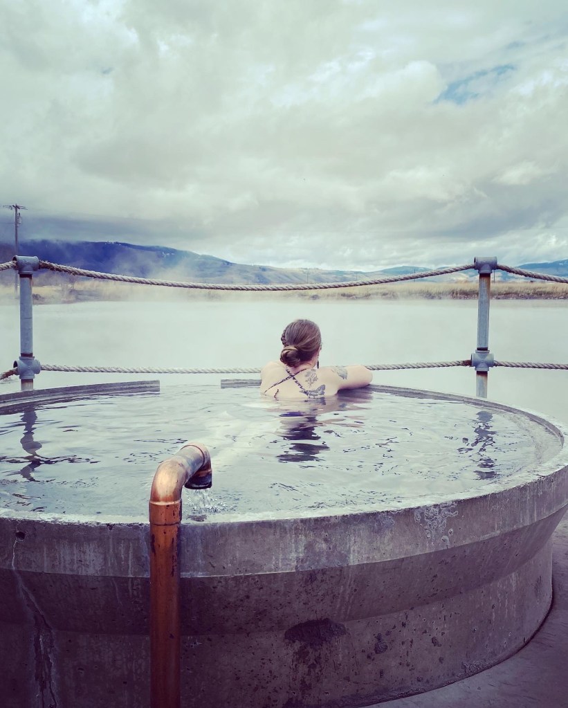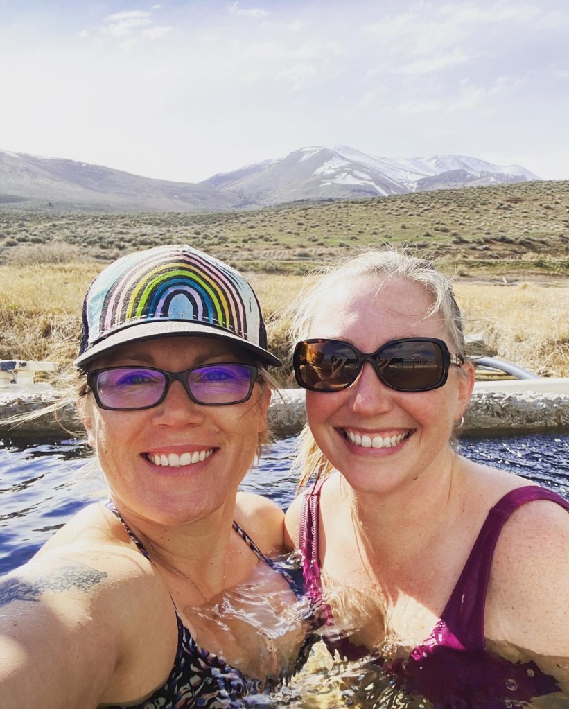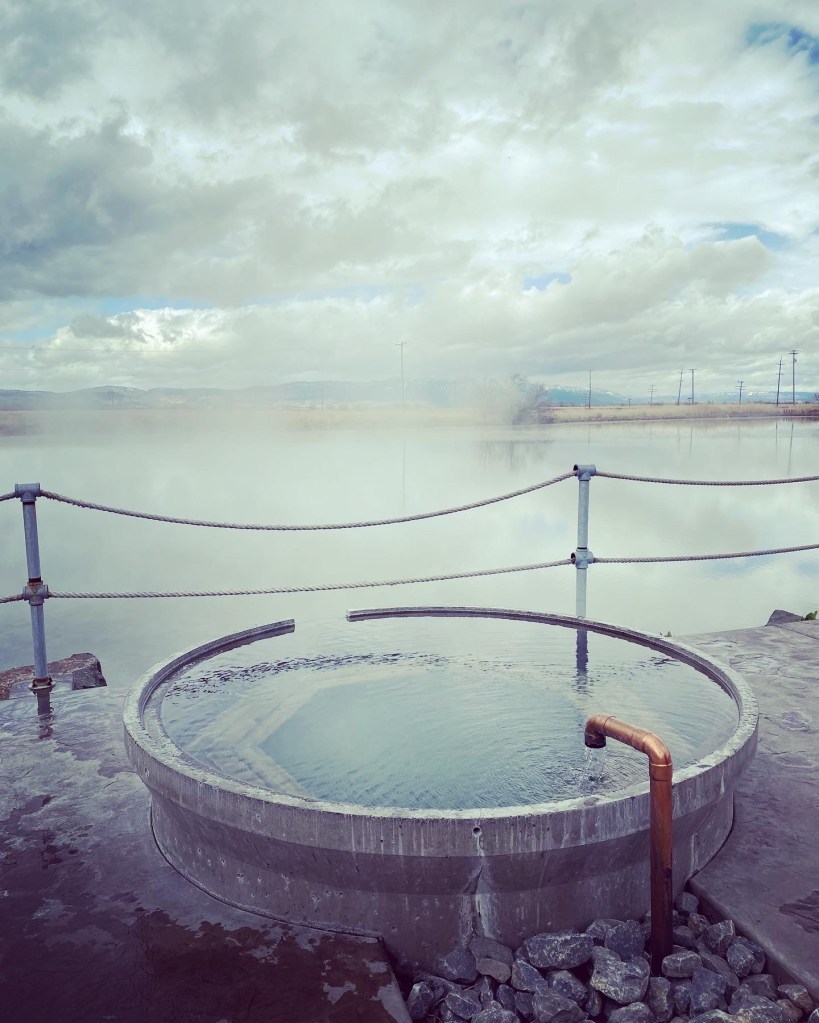 Finally… after skirting the Steens Mountains and driving through some more snow flurries, we made it to the Alvord Desert Hot Springs! This place is exactly as they describe online – rustic and interesting, and they give a great Veteran’s discount. You can camp here, but this time we opted to rented a “bunker” for the evening, and promptly checked out the hot springs. They have two pools (one was super hot and one was lukewarm). Note that clothing is optional here unless children are present 🤣 – we also drove out on the dry lakebed (!) which was way cooler than I expected! The stargazing here is INCREDIBLE!!! We woke up at 2am to see the stars and were rewarded with 3 shooting stars and a serenade from the local coyotes. The staff here are super friendly and they have a limited supply of gifts, steaks to cook on the grills, snacks and drinks. If you stay here, you also get access to drive up to Pike Creek Trail which has a year round running stream and a pretty incredible pit toilet with a view.