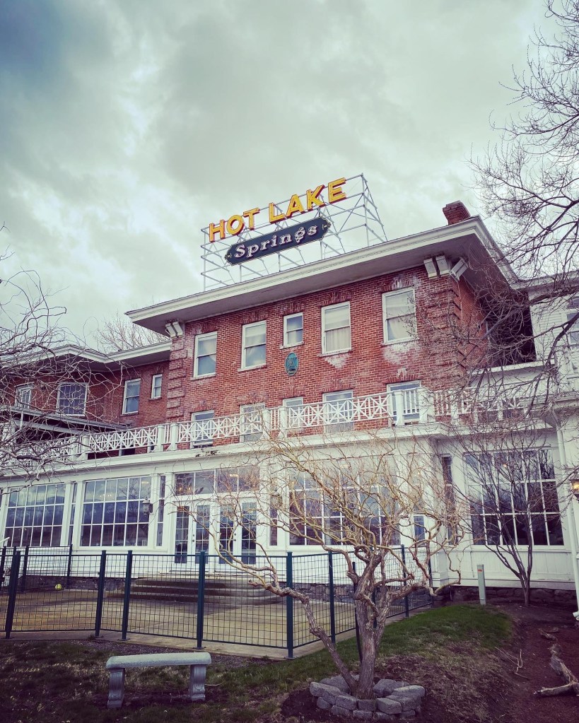 Day 2: From Pendleton, the plan was to head through the mountains toward our ultimate destination, Leslie Gulch! But… as luck would have it, after reviewing our trusty Oregon Recreation Map, we spotted a place we just had to see for ourselves… so, with our bathing suits and towels within easy reach – we traveled through some snow flurries to take a break at The Lodge at Hot Springs Lake! This is a super unique place with a very interesting history. The Lodge is still currently getting updated, but it was a fun place to stop and get a soak in after many hours on the road. They had five different pools to choose from, all overlooking Hot Springs Lake, and a nice area to hang out. In the historic lodge, it was fun to look around and explore – they have rooms for rent, a movie theater, and a bar!